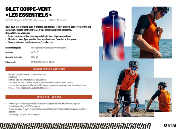 Idéal pour être combiné avec n'importe quel maillot, le gilet cycliste coupe-vent offre une protection efficace contre les vents froids et les pluies fines d’automne.